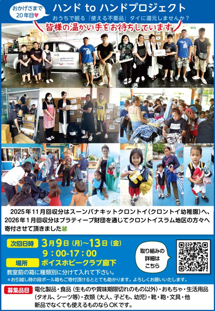 ボイスでは、2ヶ月に1回、奇数月に皆様のお家で眠る「使えるけれど使っていないもの」を回収させて頂き、タイ各地に寄付させて頂いています😌🍀