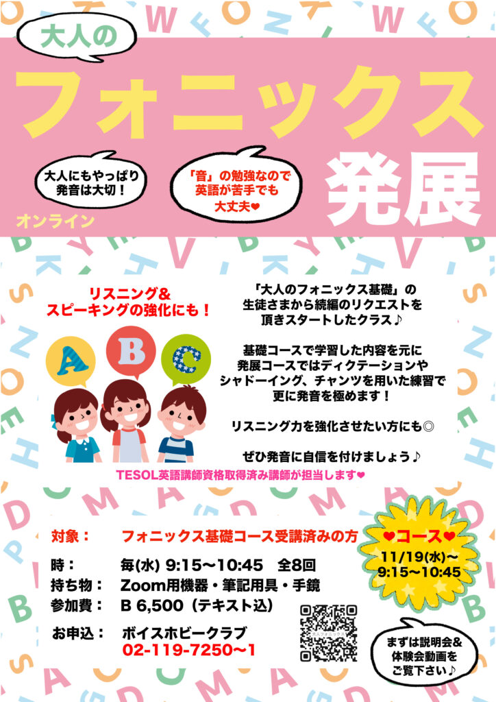 「大人のフォニックス」クラスをご受講済みの方対象です😊💕