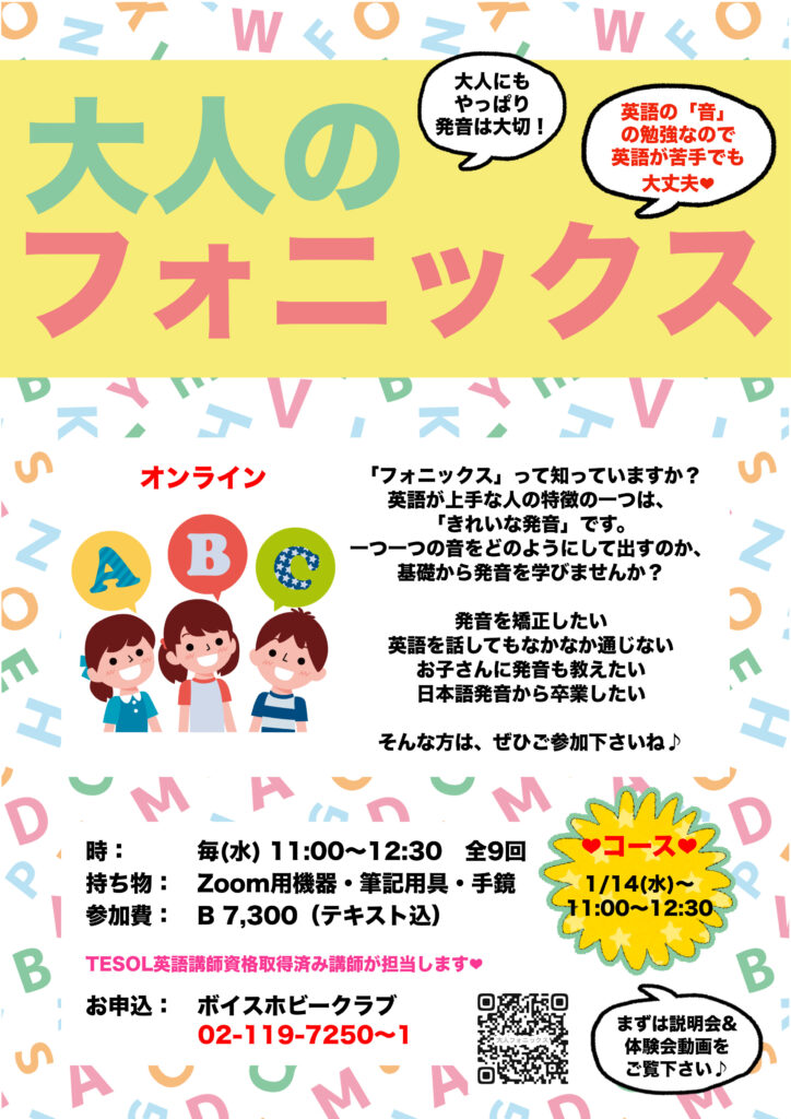 | 対象 | 「大人のフォニックス基礎」をご受講済みの方 |