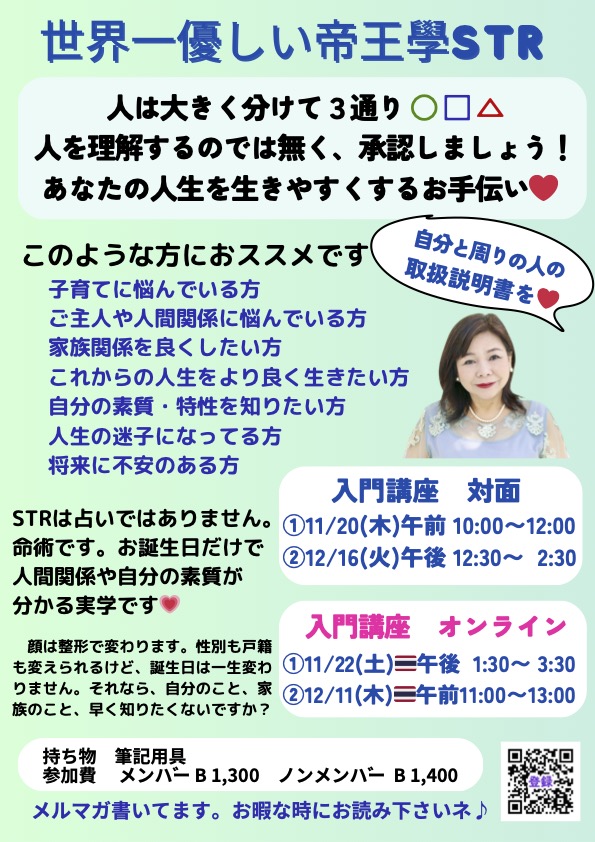 誕生日だけで!生きるのがもっと楽になる★帝王学STR講座